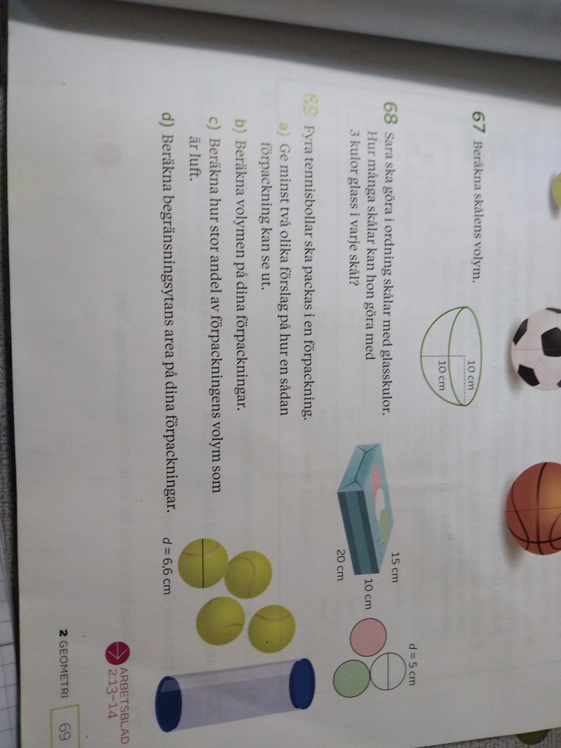 Du har ju redan fått lite information, exempelvis vet du att varje tennisboll har diametern 6,6 cm. Hur hög måste lådan minst vara för att få plats med 4 st bollar? Hur lång är bottenytan?