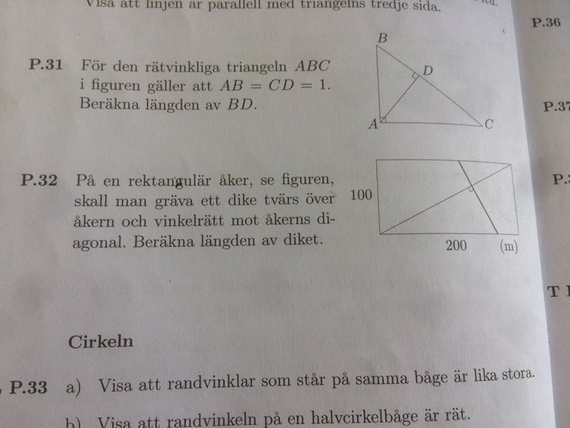 P.32. Jag kan visa att de tre trianglarna i rektangeln är liksidiga genom att alla vinklar är samma. Men sedan vet jag inte hur jag ska gå vidare. Någon som kan?