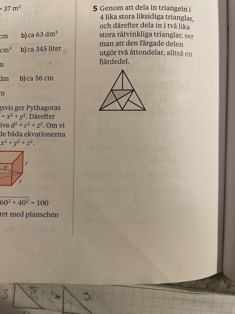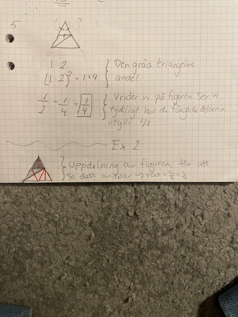 Kanske ska du byta "ser vi tydligt" mot att vi har en sammansatt triangel och en vit triangel med lika lång bas och gemensam höjd.