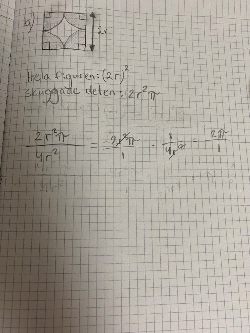Vad är arean av en cirkel? Hur har du tänkt när den skuggade delen är ? Jämför med arean av en cirkel.