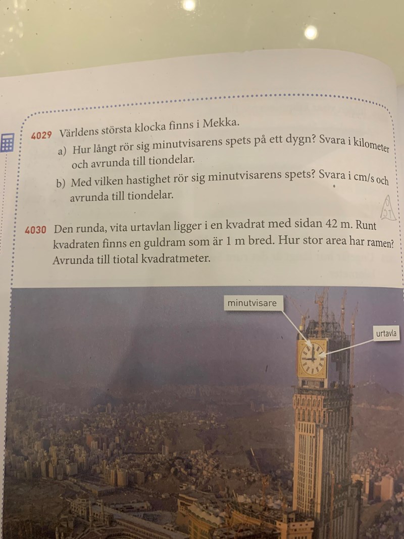 Eftersom att minutvisaren rör sig 3.2 km på ett dygn så måste jag först konvertera det till cm eftersom svaret ska vara i cm. Det blev 32 000 cm.