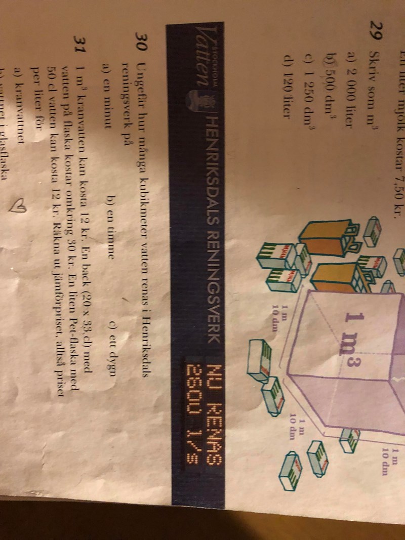 Fråga: Ungefär hur många kubikmeter vatten renas i Henriksdals renings verk på