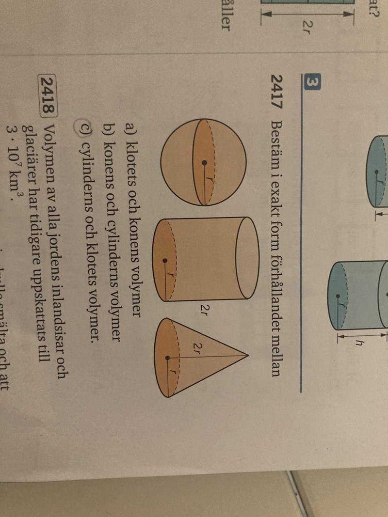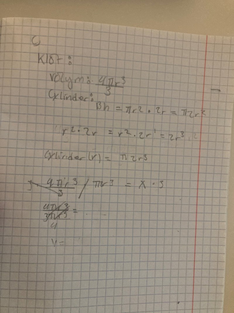 Du har räknat ut att cylinderns volym är och att klotets volym är . Så långt ser det bra ut.