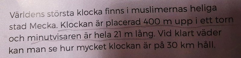 Minutvisaren är radien i klockan alltså är diametern 21x2=42 meter.