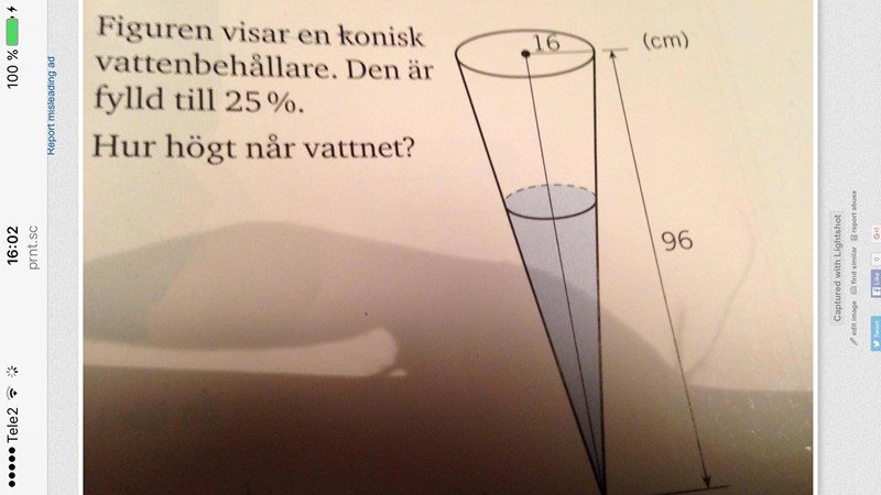 Calsey skrev :tobbew skrev :En skopa med radien 4 cm har formen av ett halvklot. Hur många skopor måste du minst ha för att fylla en kastrull som rymmer 1 liter vatten?