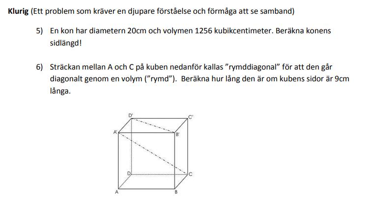 Så fråga gärna typiska frågor som skulle komma på ett högstadie prov, så svarar jag så snabbt som möjligt. Vill bara betona att jag är kanske inte bäst på svåra frågor men jag försöker ändån. Skulle helst vilja ha frågor om: Likformighet, problemlösning, geometriska kroppar, o.s.v. Gärna problemlösning med pythagoras sats.)
