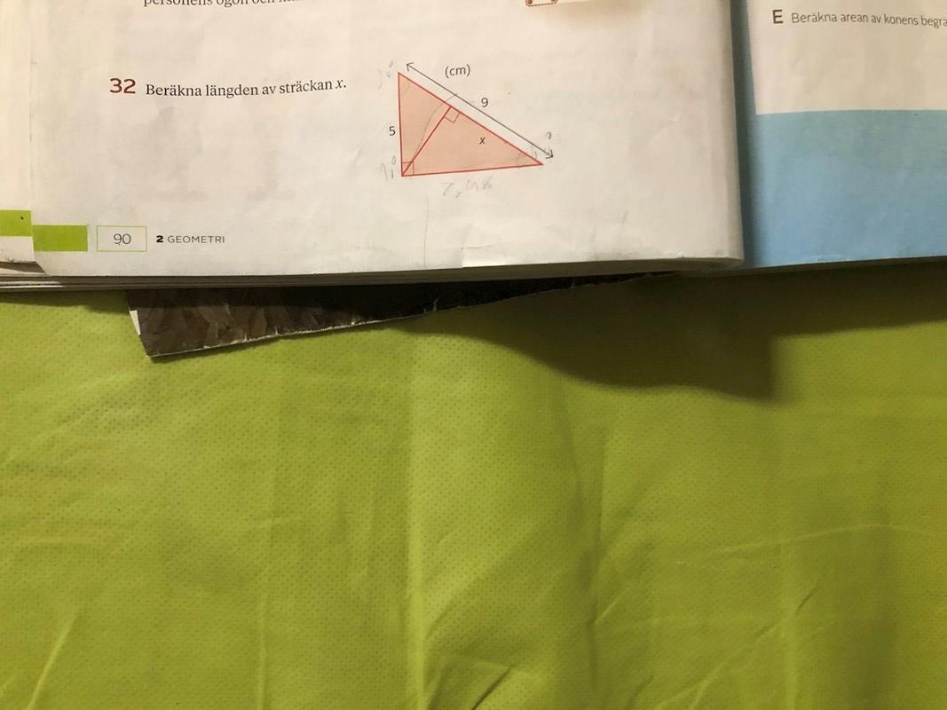 Det du skrev stämmer inte riktigt, hur kom.du fram till 5/x = x/9?