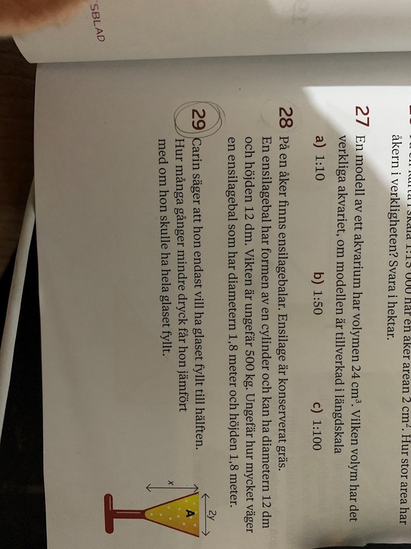 Med erfarenhet av denna bok tror jag de vill att du jobbar utifrån längd-/area- respektive volymskala. Du behöver alltså inte ”räkna ut det”