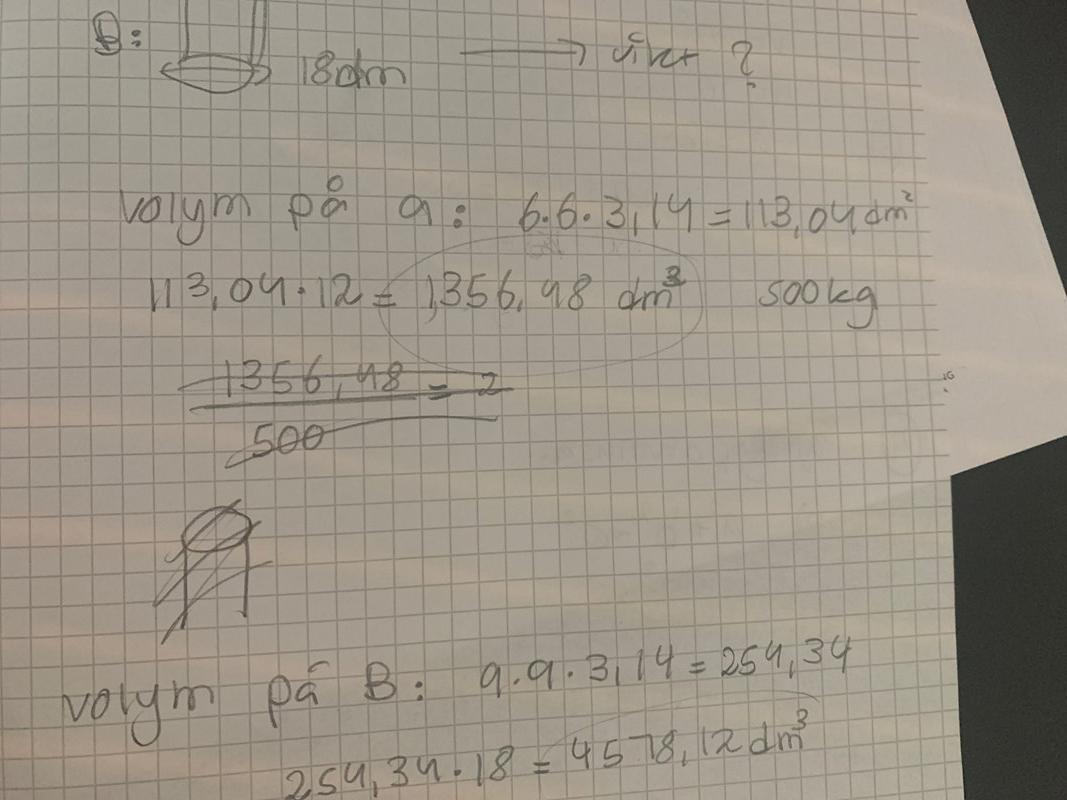 Steg 1 är att beräkna volymen av denna cylinder. Kan du formeln för en cylinder? Klarar du av att sätta in måtten r=6 och h=12 i den?
