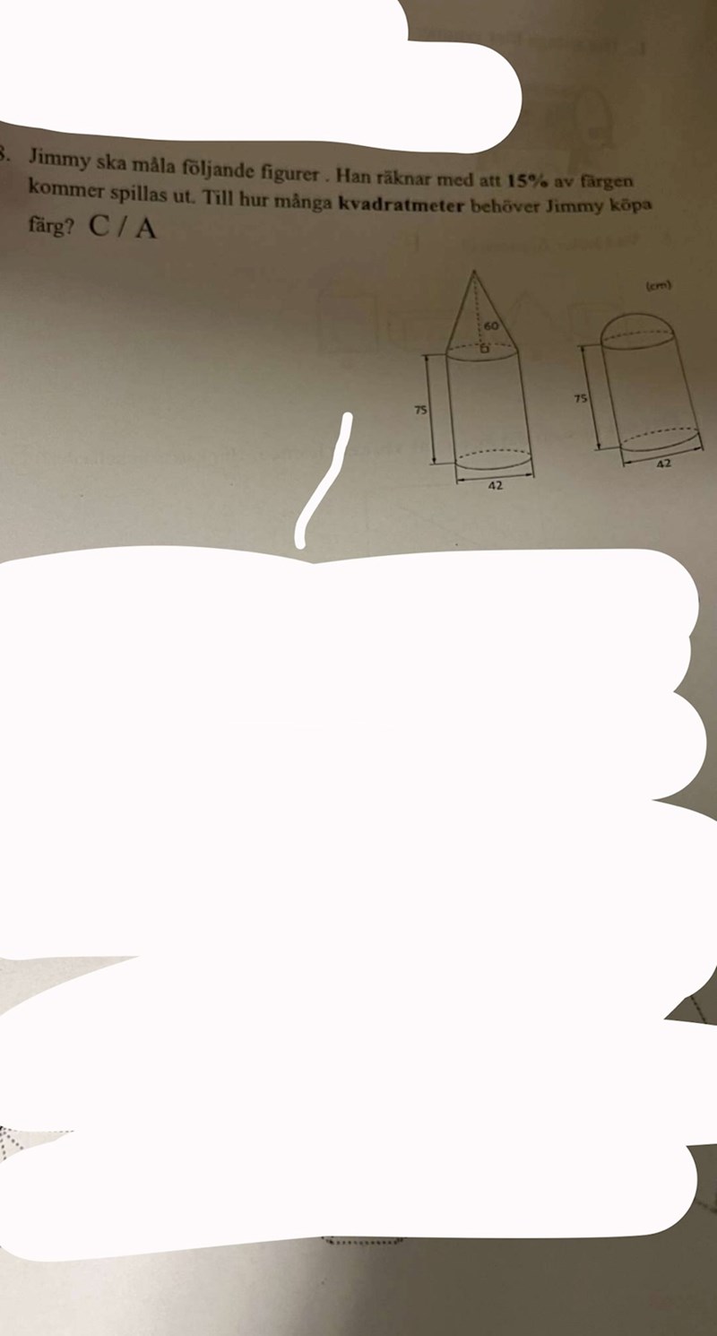 Räkna ut mantelarean på de olika formerna och addera de = x.