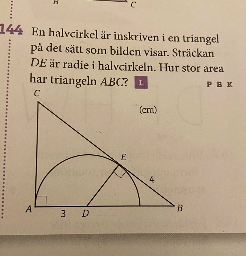 Jag har räknat ut att sidan DE 3 cm och sidan DB är 5 cm.