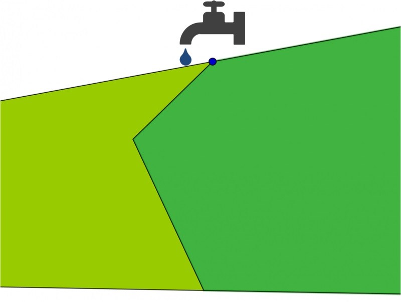 En åkermark är avgränsad av ett staket och två bönder äger marken på varsin sida. Vid staketets ena början finns en kran. De två bönderna vill göra om gränsen till att vara en rät linje, men de behöver båda ha tillgång till kranen, och de vill att båda ska ha lika stor yta som förut. Hur kan gränsen ritas om?
