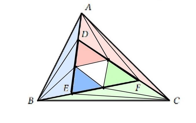 Alltså är alla de 13 småtrianglarna lika stora och ADEF = 4/13 av AABC.