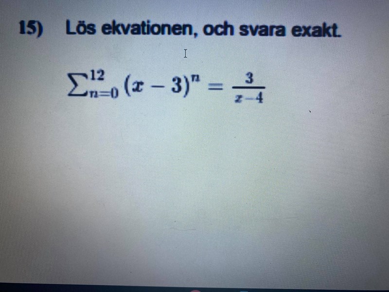 Hej! jag har fastnat på följnade fråga, bilden under bilden nedanför visar hur långt jag har kommit på lösningen. Tacksam för svar