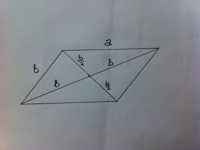 I en parallellogram med sidlängderna a och b, 0<b<a, har de två diagonalerna längderna b och 2b. Beräkna förhållandet a/b