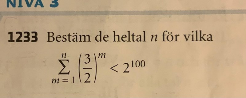 Jag hade kunnat undersöka när den primitiva funktionen av (3/2)*m < 2*100 men känns osmidigt att göra det i geogebra. Ser ej hur jag kan göra det algebraiskt för hand.