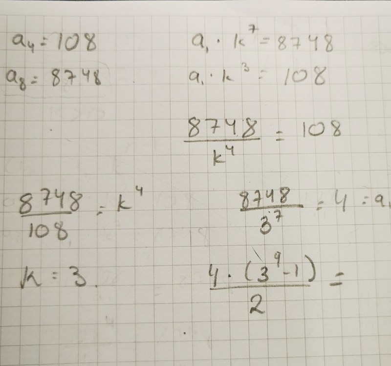 Jag har försökt lösa ut k och a1, men jag lyckades inte få rätt svar. Svaret jag fick var 39364, men svaret är 13 120