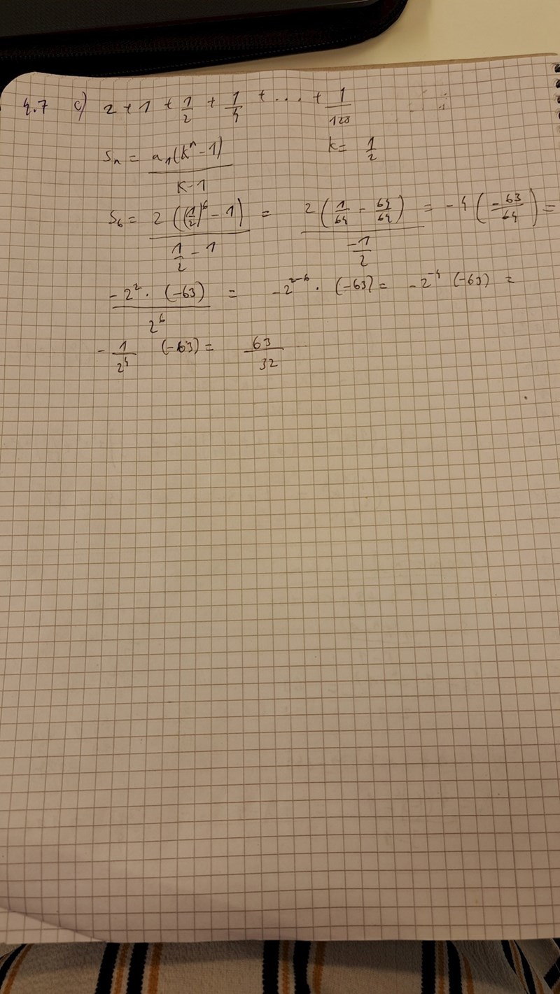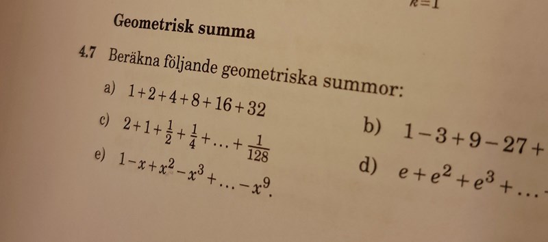 Ah okej. Jag tänker 2^6=64 och 2^7=128. Detta innebär att det fattas 5 termer för att vi ska komma upp 128