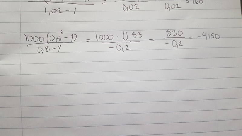 Jag ser att du i nämnaren skrivit att 1,02-1 = 0,2, men det är 0,02