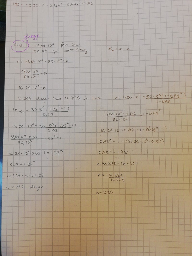 Ovan finns en bild av min uträkning. Jag får rätt på a, men de andra blir helt fel. Ser någon vad som är fel i min uträkning på b och c?