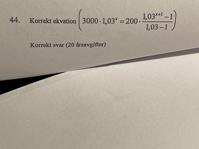 Förstår inte varför exponenten i HL är x+1 istället för x? I övrigt ställde jag upp samma ekvation