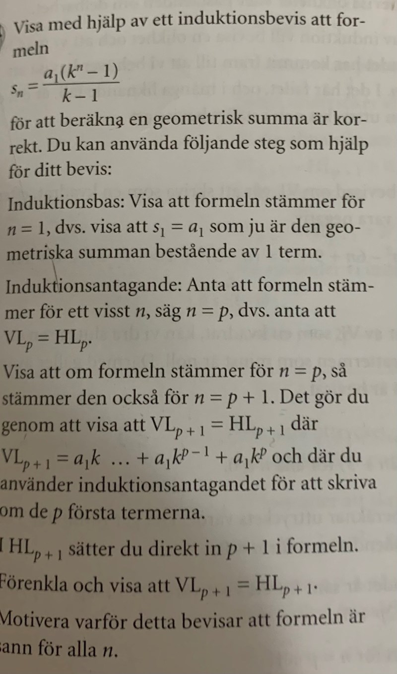 Matematik / Matte 5 / Talföljder och bevisteknik 1 svar 104 visningar duffie behöver inte mer hjälp Avmarkera duffie 423 Postad: 16 jan 2022 14:12 Geometrisk summa / induktionsbevis Trinity2 Online 3710 Postad: 16 jan 2022 14:37 Hur långt har du kommit? Användare skriver Svara Du behöver Logga in eller Bli medlem först! Avbryt