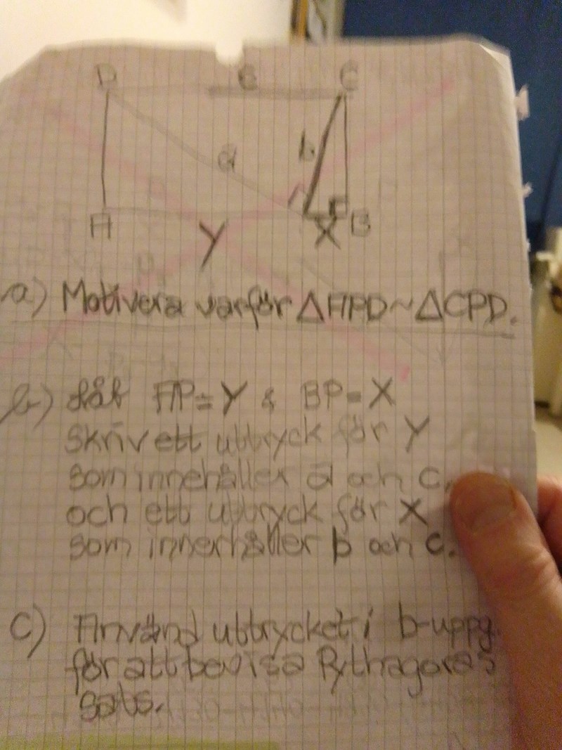Men hur ska jag använda dessa uttryck för att i c-uppgiften bevisa Pythagoras sats?