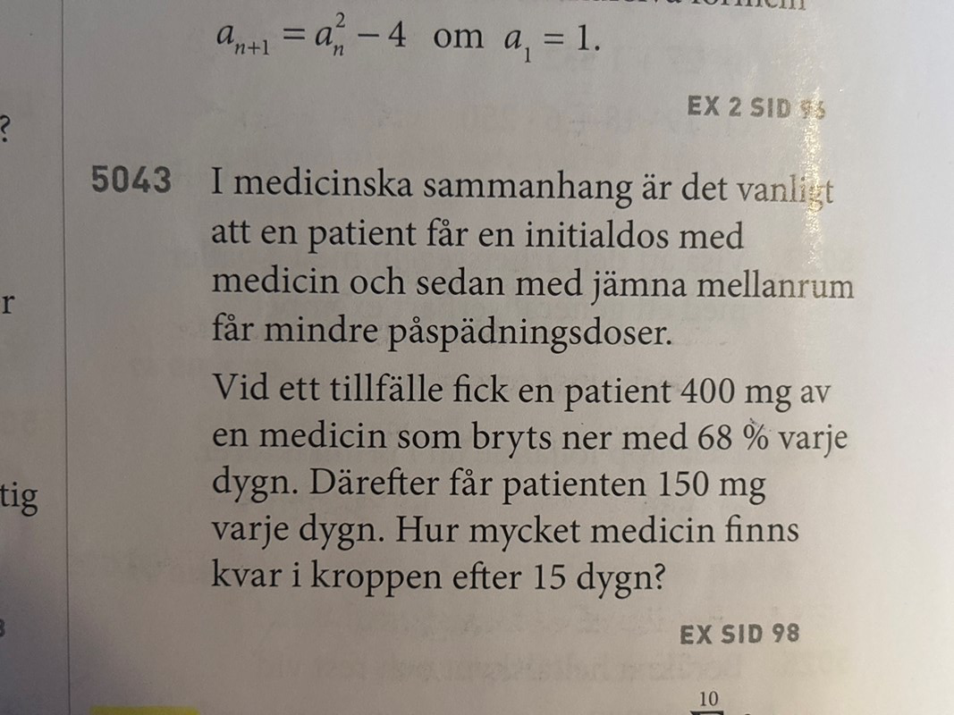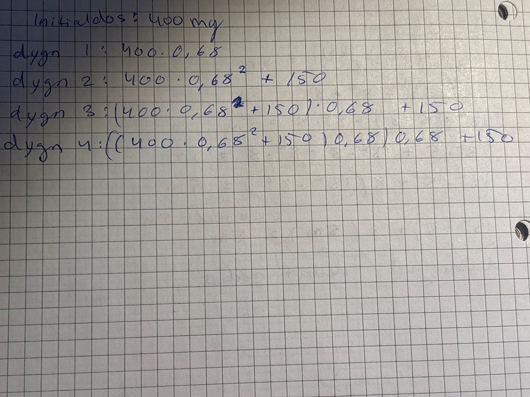 Hur mycket är kvar av dosen som patienten fick igår? I förrgår? För tre dagar sedan? ... osv.