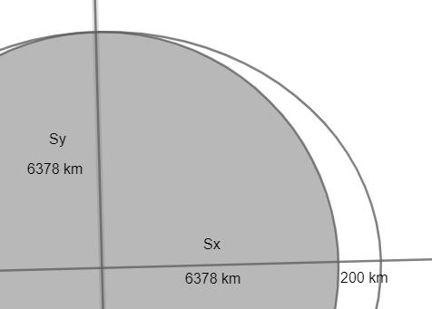 Hur har de fått att sy är 6378 km och att sx är 200+6378 km? Höjden 200 km är ju sy