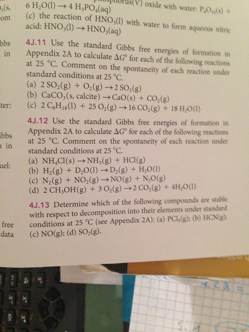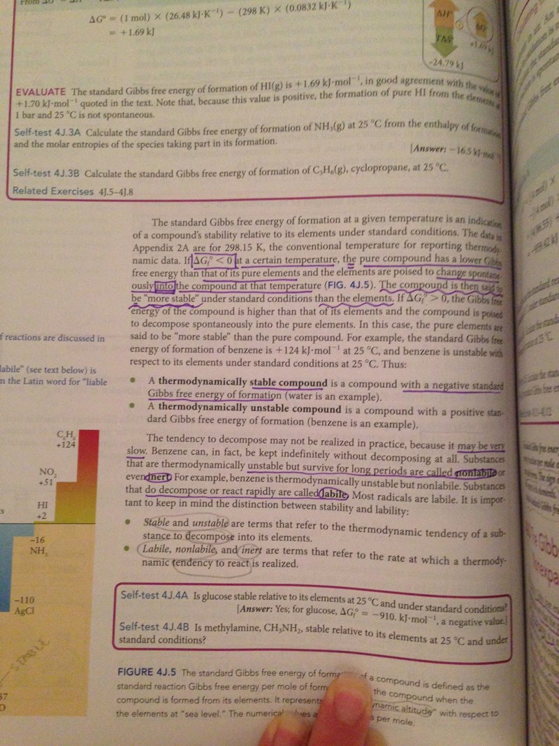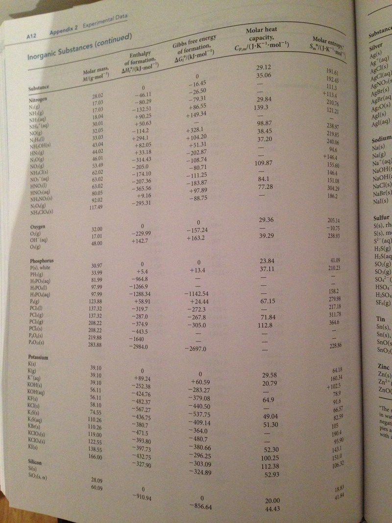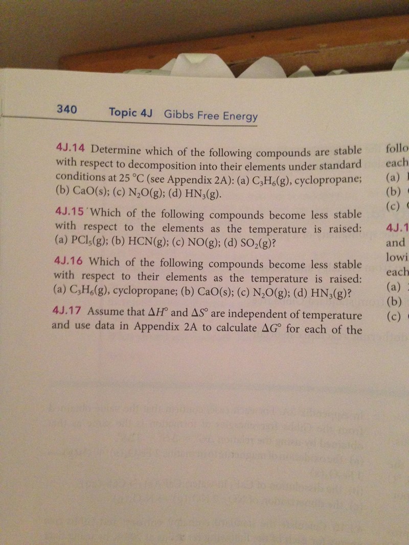 13 först - mha sista bilden och tabellen i boken över ämnens Gibbs fria energi of formation som säger alla ämnena hat positiva och sista bilden som säger, men som jag verkar ha tolkat fel då facits svar är att a) och d) är stabila, att ämnen med positiv Gibbs är stabila fick jag det till att alla är stabila.
