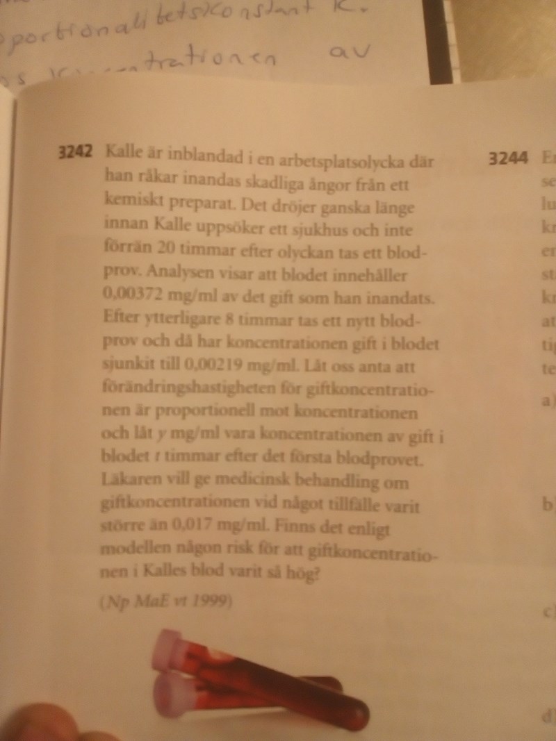 Det provet som togs 8 timmar efter det första togs efter 28 timmar, inte efter 8 timmar. Kommer du vidare då?