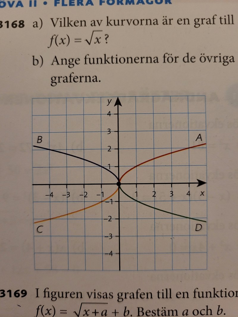a) Vilken av kurvorna är graf till f(x) = roten ut x?