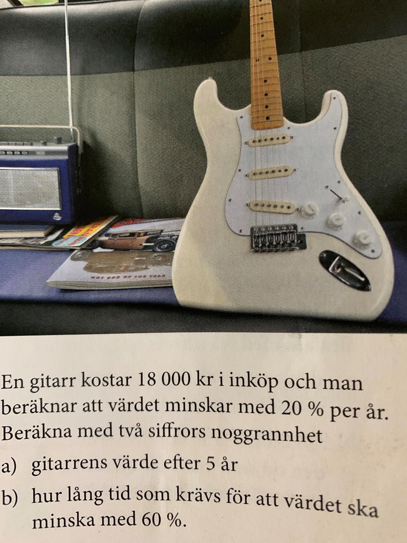 Smaragdalena skrev:Har du tänkt på att man frågar efter när värdet har MINSKAT med 60 %, inte när värdet ÄR 60 % av vad det var från början?