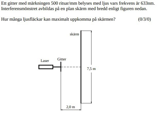 Max vinkeln är ca 62 grader. Och jag ska använda gitterformeln. Men vad blir våglängden?