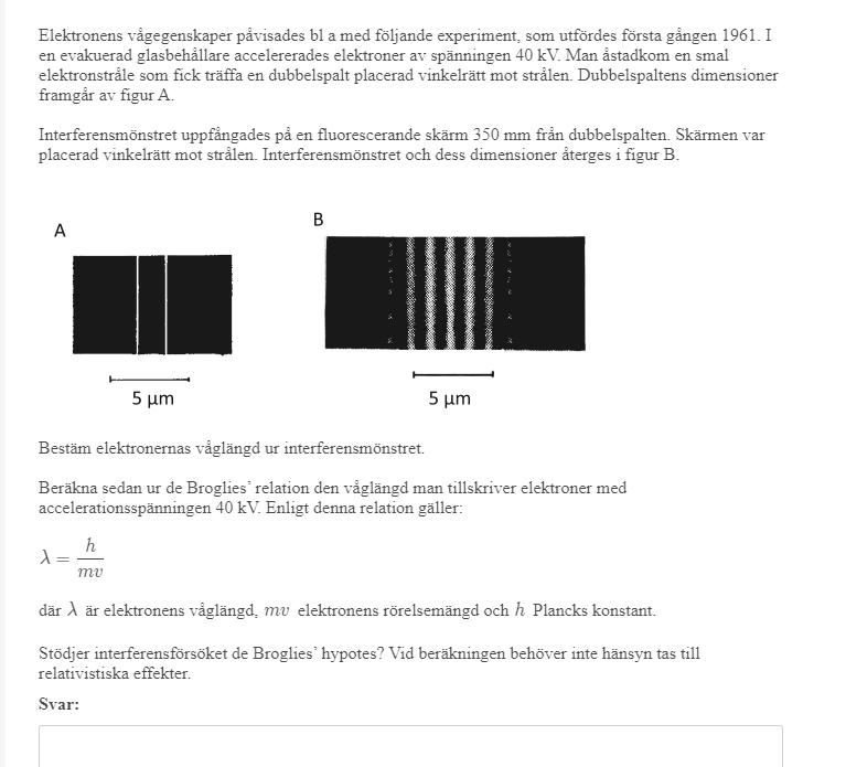 Jag fick svaret 6,4 pm istället för 6,2. Men jag verkar inte ha löst det lika som dem. För att beräkna vinkeln tog jag och ritade upp en rätvinklig triangel där basen var 350 mm och höjden till andra maximum utifrån bilden. Men de verkar använda sinus?? Förstår inte varför, har jag missförstått själva experimentet?