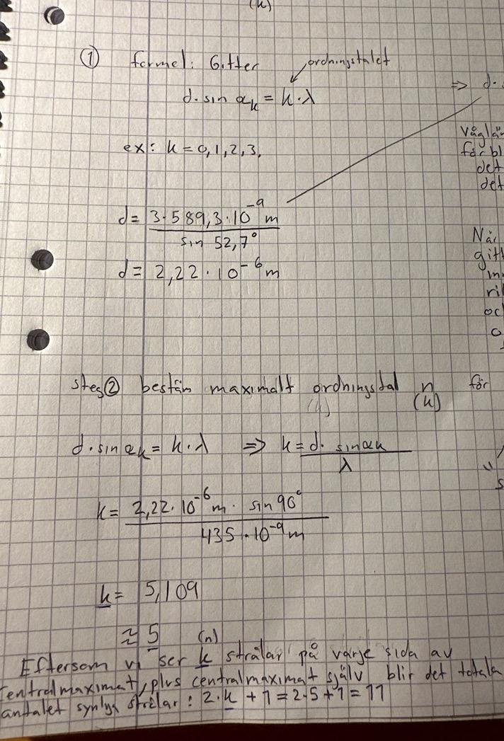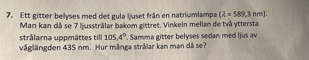 man behöver hitta gitterkonstanten d, med det första stycket av information?