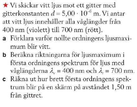 jag missuppfattade frågan, så avståndet mellan våglängderna i 1:a ordningen är 9,2cm