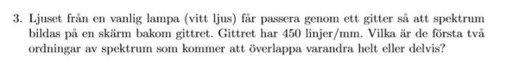 Smaragdalena skrev:Pieter Kuiper skrev:Hjälpmig01 skrev:46 grader motsvarar våglängden ca 530nm i det treje spektrat och därför ritade jag in det fjärde spektrat så att den ligger i det tredje.