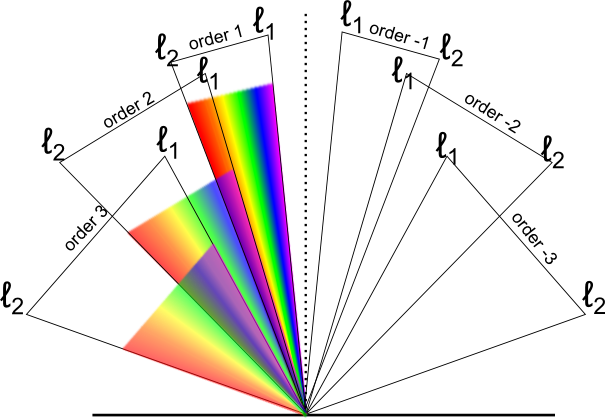 Betyder det att de överlappar då sinus värdet blir större än 1 eftersom det inte finns ett värde för vinkeln som ör större än 1? Det betyder väll att den delen av spektrat inte går att se eftersom det ligger över 90 grader. Hur kan det fjärde ligga under?