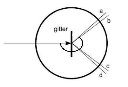Du har markerat vinkeln b i din bild. Du behöver alltså räkna om det innan det blir en vinkell som kan användas i gitterformeln. Vilken är vinkeln till centralmaximum? (Det är inte 180 grader, som man skulle kunna tro.)