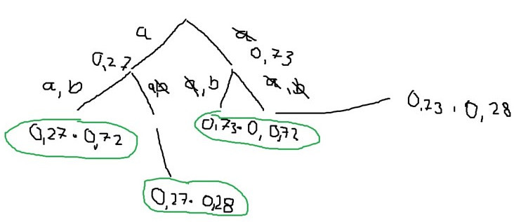 Laguna skrev:När det gäller bara två händelser, a och b, så kan det fungera bra med en 2x2-tabell. I synnerhet om händelserna är oberoende, då kan man skriva in alla sannolikheter direkt.