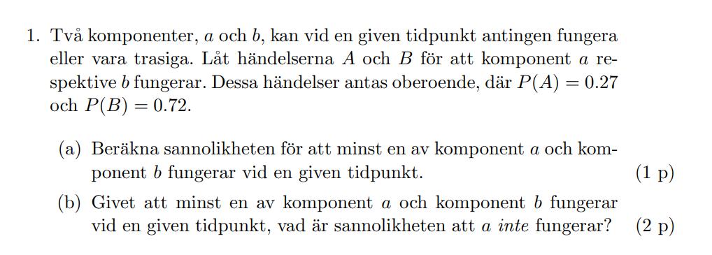 givet att minst en av komponenterna fungerar, vad är sannolikheten att a inte fungerar?