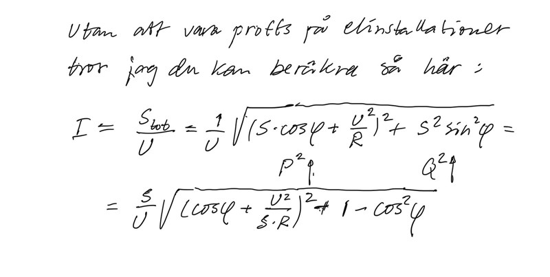 Impedans: Z=U/I = 53.8= 230/I (då det blir 4.27A)