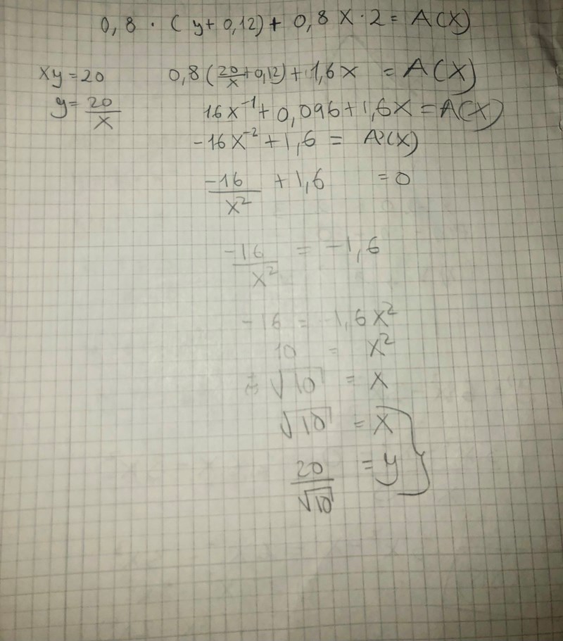 Ja men jag förstod inte varför man skulle göra så. Jag följde dina uträkningar men jag förstår inte varför man ska ta 0.8*x*2? Varför man tar gånger två är jag med på för vi har då st sidor. Men varför ska man ta 0.8*x?