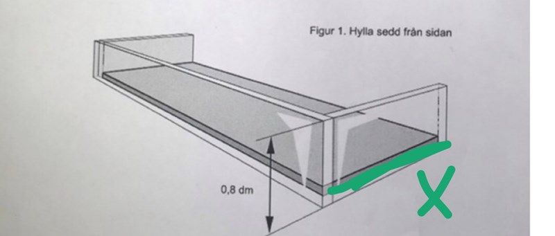 Figur 1 visar hyllan sedd snett uppifrån och från sidan.