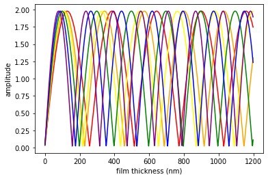 Där är det fortfarande tunna skikt och redan där försvinner färgerna när tjockleken blir större än några våglängder. Igen: färgerna som man ser är de komplementära färgerna till våglängden som det tjockleken och vinkeln ger destruktiv interferens för.