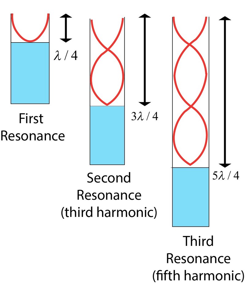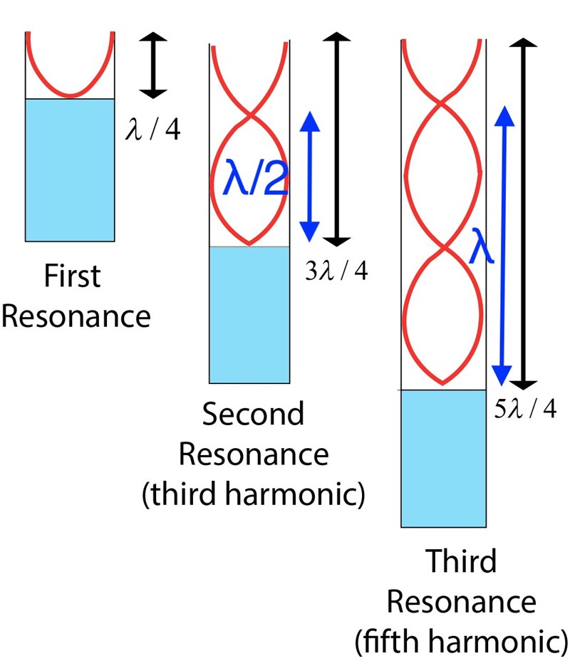 Det beror på att de får resonans (förstärks) vid olika längder på luftpelaren i glasröret. Men hur bidrar den till förstärkningen av ljudet? Vi har dessutom fått 4 olika längder givna, representerar dessa olika längder och därmed olika toner?