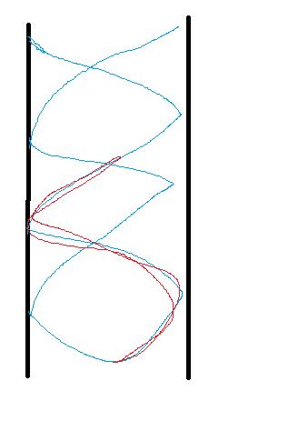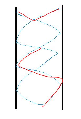 Det röda nere är att den är en våglängd större. Det röda uppe "representerar" grundtonen, och det som inte är ifyllt är typ 1/4 dvs skillnaden mellan dessa är 5/4 våglängder?