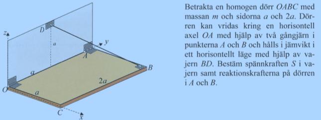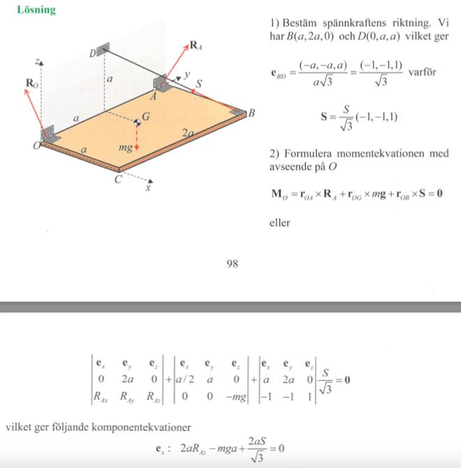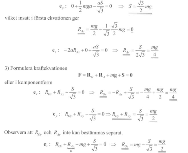 Jag tror problemet är statiskt obestämt om man introducerar reaktionsmoment i x- och z-led. Är spännkraften känd?