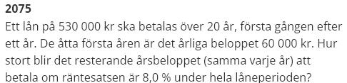 530 000*1,08 - 60 000 = 512 500Hur mycket återstår efter 8 år?